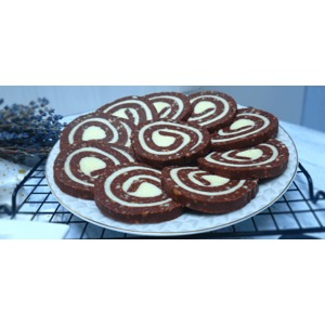 Основу положить между двух листов пергамента и раскатать в пласт 30х40 см. При необходимости подравнять края. Сверху распределить начинку, свернуть в рулет и убрать в холодильник на 3-4 часа для застывания. Далее нарезать на кусочки толщиной 1 см. Хранить в холодильнике!
