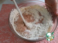 Постепенно добавляем муку и замешиваем тесто в чашке. Затем вымешиваем тесто на столе. |