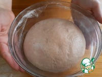 Перекладываем тесто в чашку, смазанную растительным маслом. Прикрываем пищевой пленкой и оставляем на подъем на 1 час. |