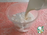 Готовим помадку. К творожному сыру добавляем сахарную пудру и сливки. |