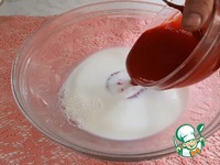 В молоко добавляем клубничное пюре. Перемешиваем венчиком. |