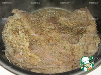 Маринованное мясо выложить в чашу МВ. Воду и масло не добавлять! |