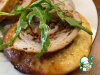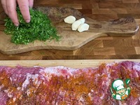 Описание: Очень ароматный и красочный рулет. Этот рулет хорош как в горячем виде, так и в охлажденном. Несмотря на то, что пузанина - недорогое мясо, рулет получается довольно изысканный. Украсит праздничный стол и разнообразит будни.
