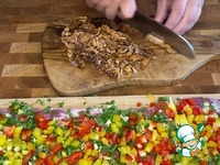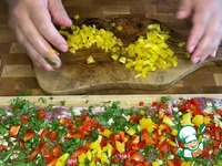 Болгарский перец мелко нарезать и распределить по всей поверхности. |