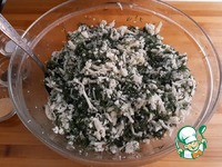 Добавляем к сыру укроп, соль, перец и сухой чеснок. Хорошо перемешиваем. Начинка готова. |