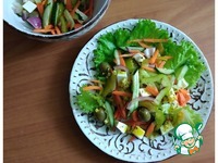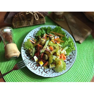 Описание: Салат из овощей и феты, заправленный пикантной заправкой на горчичном масле.