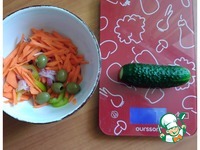 В общий салатник нарезаем овощи. Все овощи у меня взвешены. Нарезайте произвольно, как вам нравится всё, кроме оливок. Листья салата не трогаем, я выстелю ими тарелку для салата. |
