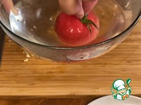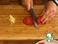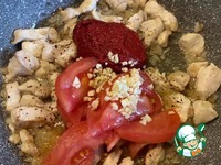 Добавить томатную пасту, помидор и чеснок. Перемешать. |