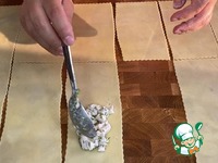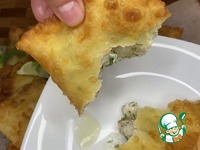 На одну половину выложить начинку, второй половинкой накрыть. Тщательно слепить края. |