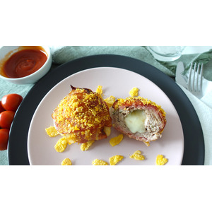 7. Заворачиваем в бекон и обваливаем в растертых кукурузных хлопьях.