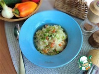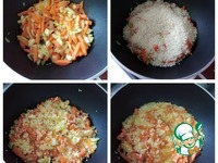 Для диетического блюда, нам нужен диетический куриный бульон, поэтому филе варим без кожицы и плёнок. Добавим в бульон луковицу целую в шелухе и морковь, порезанную на четвертинки. Посолим бульон по вкусу и в конце варки добавим перец душистый. В высокий сотейник наливаем масло, греем его и выкладываем мелко порезанный чеснок, следом - порезанный лук. 2 "секрет" - В начале приготовления практически всегда обжаривают репчатый лук. Он должен смягчиться, но не подрумяниться. 3 "секрет" - К луку добавляют рис и обжаривают его в течение 2–3 минут, постоянно помешивая. Крупинки должны пропитаться маслом и стать полупрозрачными. Вот здесь я отступлю и выложу нарезанную брусочками неварёную морковь и потомлю пару минут лук с чесноком с ней. (Это потому, что по диете мне предложен рис с луком и морковью на обед). Добавлю ещё морковь сваренную из бульона, тоже порезанную. Теперь выложу рис. 4 "секрет" - Почти всегда в ризотто добавляют белое сухое вино. Оно придаёт блюду особый аромат. Налила вина и готовила до выпаривания алкоголя и впитывания вина в рис. |