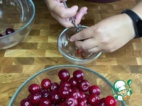 Вишню перемешать с крахмалом и сахарной пудрой. |