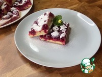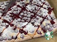 Тёплый пирог разрезать на кусочки. Посыпать сахарной пудрой. |