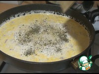 Вливаем сливки, добавляем специи по вкусу, у меня это сушеный чеснок и прованские травы. Попробуем на соль, если нужно, подсолим. Хорошо перемешаем и тушим ещё на маленьком огне 5 минут. |