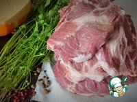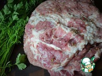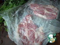 Нарезать свиную шейку на стейки, 6 шт.. Зелень вымыть и обсушить, смесь перцев истолочь. |