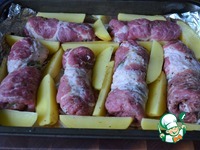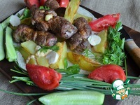 Описание: Вкусное горячее, приготовьте, порадуйте близких. В наших планах был обед во дворе, рулетики на решётке мангала, но погода подвела..., хотя и в духовке получилось бесподобно. Рекомендую.