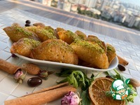 Описание: История турецкой сладости под названием «Кадаиф» начинается со времен Великого Сельджукского Государства (1037-1194 г.). В период правления Османской империи Кадаиф был включен в основное меню блюд, подаваемых на стол султана и его гарема. Считалось, что данный десерт придавал блеска волосам и округлости бедрам наложниц. Нередко сладкий Кадаиф маскировал вкус лекарств. Существует несколько разновидностей Кадаифа, мы сегодня приготовим Таш Кадаиф что в переводе означает Кадаиф-камень.