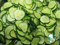 Сок слить, огурцы обсушить. Огуречный сок можно использовать для маринадов или для салатных заправок. |