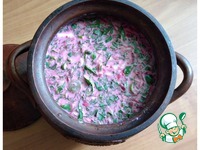 Заливаем кефиром, соединённым с солью. Вилочкой подвзбейте кефир. В аутентичном рецепте Шалтибаршчай заливается кефиром жирным и разбавляется сливками. Но иногда разбавляется кефир водой кипячёной остывшей. Я выберу для себя второй вариант. По опыту знаю, что общий объём кефира и воды должен быть в соотношении: кефир -3 части, вода -1 часть. Значит у меня воды 250 мл и кефира 750 мл. Мне кажется так вкусней и нежней. Вы можете налить всего по своему вкусу, корректируя сразу густоту Шалтибаршчай. Пробуем и досаливаем по вкусу. Отправляем в холодильник для охлаждения и настаивания. Я могу есть не дожидаясь. |
