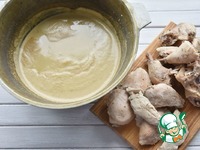Сациви - густой соус на размолотых грецких орехах, бульоне из птицы с определенным набором специй. Традиционно соусом заливается отварная курица или индейка. Это невероятно ароматное, по домашнему вкусное блюдо.
