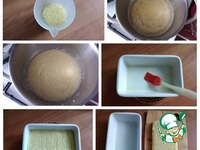 Я приготовлю домашнюю. Все продукты для рецепта взвешены, т к я считаю для себя калорийность готового блюда. Крупа к воде берётся в соотношении: один-к-трём. Ставим кастрюлю с водой на плиту и немного не доводя до кипения, помешивая, высыпаем в воду крупу. Кастрюлю лучше взять с толстым дном и стенками, постоянно помешивать крупу в кастрюле, чтобы она не пригорела. Варят поленту из крупы примерно 25-30 минут до готовности и если вода вся впиталась, а она не готова (пробуем), то доливают понемногу горячую воду. Это конечно зависит от крупы. Солят поленту где-то в середине варки по времени, минут через 15. Мне полента нужна плотная. Полента сварилась и я её переложу в подмазанную керамическую форму шириной -10 см и длиной-17 см и дам ей там остыть и застыть. Если не готовить сразу блюдо, то её можно убрать в холодильник до готовки. Из формы поленту выложила на доску. Легко! |