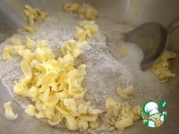 В ржаную муку с сахаром натереть или порубить замороженное масло. |