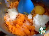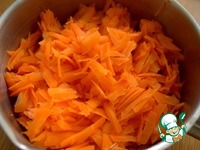 Для начинки отварить морковь. Можно целиком, я взяла из морозилки, заранее всю натираем, потом используем-нам так удобнее. |