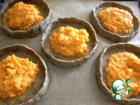 Каждую скатать в шарик и расплющить в корзинку с бортиками. Идеально не стоит стараться, бортики нужны, чтобы начинка не вытекла. |