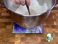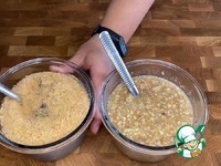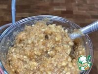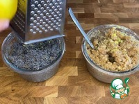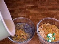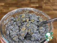 Приготовить сахарный сироп: добавить в воду сахар и прокипятить 10 минут. Горячий сироп добавить в маковую и ореховую начинку, смешанную с изюмом. |