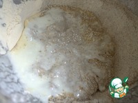 Залить кефир или простоквашу с солью, включить замес теста. |