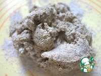 Липкое тесто перенести на стол с мукой. Скатать в ком, пока перестанет липнуть к рукам. |