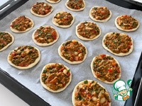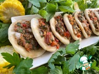 Описание: На русский язык переводится как «Лахмаджун - фундук» и является миниатюрным закусочным блюдом «на один зубок», родиной которого принято считать город Тарсус на юго-востоке Турции. Крошечные лепешки из теста, покрытые смесью фарша и овощей, подаются в ресторанах при ожидании смены блюд. Мы попробуем взглянуть на это блюдо с повседневной точки зрения и приготовим аппетитные мини – лахмаджуны на обычной кухне, тем более все необходимые продукты у нас под рукой.