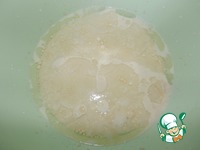 В миску налить тёплое молоко. Добавить дрожжи. |