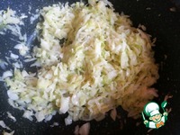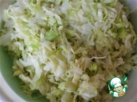 Готовим начинку: Молодую капусту ошпариваем кипятком. Если капуста НЕ молодая, то отвариваем 10-15 минут в подсоленной воде. |