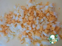 Отвариваем вкрутую яйца. Чистим, а потом нарезаем. |