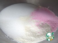 Смешать муку с разрыхлителем, сахаром и сухим ванильным пудингом. Вместо пудинга у меня сухой клубничный кисель-34 г. |