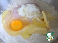 Добавить яйцо, мягкое масло, сметану. Сметану можно заменить частично йогуртом. У меня 50/50. |