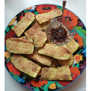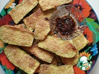 Описание: Очень вкусное и легко приготовляемое блюдо. Цуккини с хрустящей корочкой из кунжута и пикантным соусом.