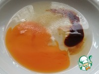 Смешать яйцо, соевый соус, я беру соуса с четверть чайной ложки. Добавить пару капель масла, кунжутного. Чесночный порошок и соль по вкусу. |
