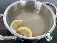 Первым делом варим сироп. В кастрюльку кладем сахар, воду и лимон, доводим до кипения и варим еще 10 мин. Оставляем остывать, он нам нужен холодным. |