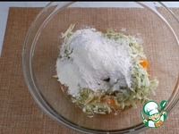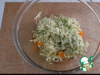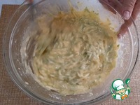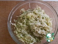 К яйцам добавляем отжатые от жидкости кабачки. Добавляем соль. |