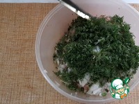 К фаршу добавляем лук, укроп и специи по вкусу. У меня соль, перец и паприка. |