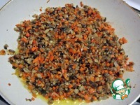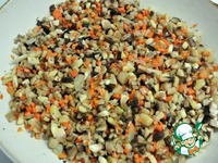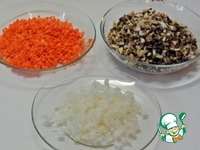 Лук, грибы и очищенную морковь нарезать мелкими кубиками. |