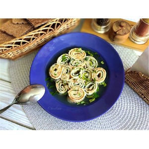 Описание: Фриттатензуппе (Frittatensuppe) – бульон с нарезанными тонкими полосками блинчиками. Супы в Австрии традиционно варят на мясном бульоне. Говяжий бульон с различными заправками превращается во вкусные блюда. В Австрии это скорее подается как закуска, а не основное блюдо, в отличие от нашей кухни.