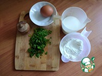 Готовим всё для блинчиков. Петрушку мелко режем. Молоко должно быть тёплым. |