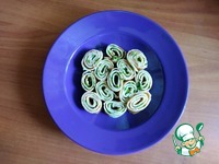Нарезаем поперёк на ширину примерно по 1 см. Блины можно просто нарезать полосками шириной-1 см и длиной, чтобы удобно было есть. |