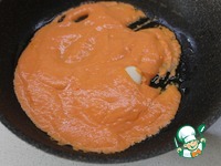 Затем чеснок убрать, в сковороду высыпать пасту и хорошо перемешать. Для более бархатной консистенции добавить немного воды, в которой она варилась. |