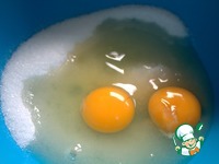 В сахар с ванилью вбить яйца, слегка взбить. |