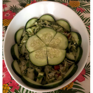 Описание: Сочный и освежающий салатик. По наличию кальция, кольраби сравнима с кисло-молочными продуктами, а по калию и магнию - превосходит яблоки и крупы. "Стеблевая репа" богата витамином С, которого не меньше чем в цитрусовых.