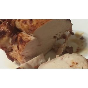 Далее обмажем грудку маринадом со всех сторон. Поставим в духовку на 200 градусов на 20 минут, у меня на среднем уровне, смотрите по своей духовке. Затем выключим духовку, но грудку не вынимаем до полного остывания.